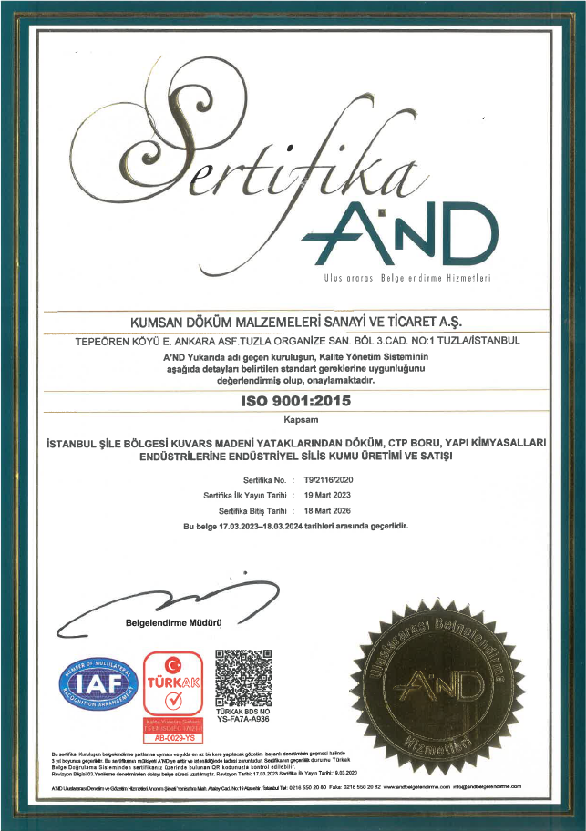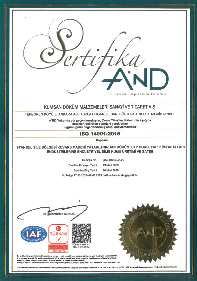 Ürünlerimizde sıfır hatayı hedefleyen çalışmaları organize etmek ve müşterilerimize sunduğumuz değeri arttırmak tedarikçilerimizin sağladığı ürün ve hizmetlerin kalitesini arttırmaları için, tedarikçilerimizle olan işbirliğimizi güçlendirmek, gelişimlerini takip etmek ve desteklemek karşılıklı saygı ve güvene dayanan, insan odaklı bir yaklaşımla çalışanlarımızın gelişimlerine katkıda bulunmak yasal şartlara uyum içerisinde faaliyetlerini yürütecek, çevreye duyarlı ve iş güvenliğini ön planda tutarak proseslerini işletmek politikamız, sistemimizin sürekli geliştirilmesi ve iyileştirilmesi için kılavuz vazifesi görmektedir ve her yıl gözden geçirilerek KUMSAN’ı daha iyi ifade edebilmek adına gerektiğinde revize edilir.